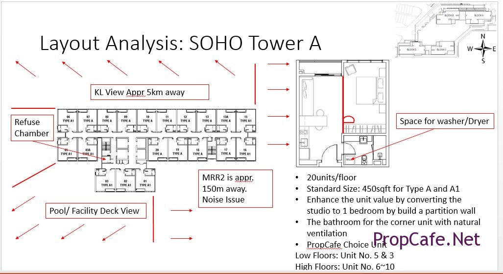 The plus point here is that the developer carefully segregate the SOHO residents and the apartment residents in different block therefore the usage of such units wont crash. However due to the extreme small size of the majority SOHOs, one would wonder what can a person do as business for such restricted space except for own stay purpose. However, when we get clarification from authorised agent, the SOHO block will be used as residential block with DMC to “NOT” allow it to use as offices unlike the other SOHO. Only buyer will know whether it is true when one sign the DMC later.