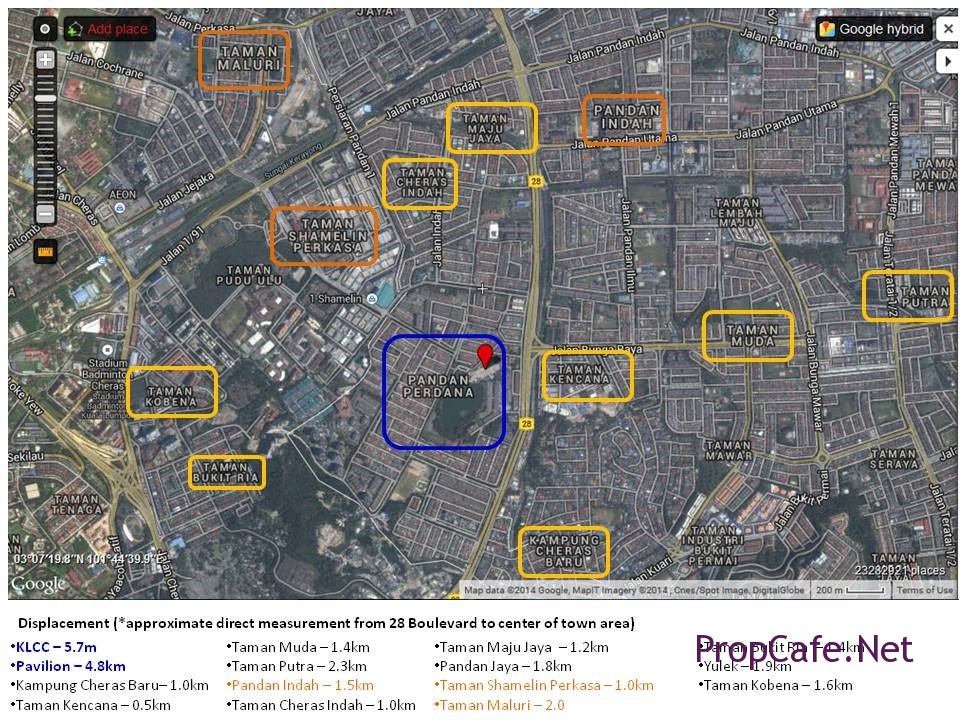Pandan Perdana is located at border of Cheras and Ampang, where the address carrying the postcode of 55300 Kuala Lumpur but under the jurisdiction of the Majlis Perbandaran Ampang Jaya MPAJ. Most of the time, we always like to benchmark the location of a project by using KLCC & Pavilion as the yardstick where most of us think that this place is the centre of the gravity, in this case 28 Boulevard won’t be exceptional and the approximate displacement (direct measurememt) from 28 Boulevard to KLCC Shopping Centre is 5.7km and Pavilion is merely 4.8km. Is it near or far? This is subjective to individual and I will leave it to reader to decide.