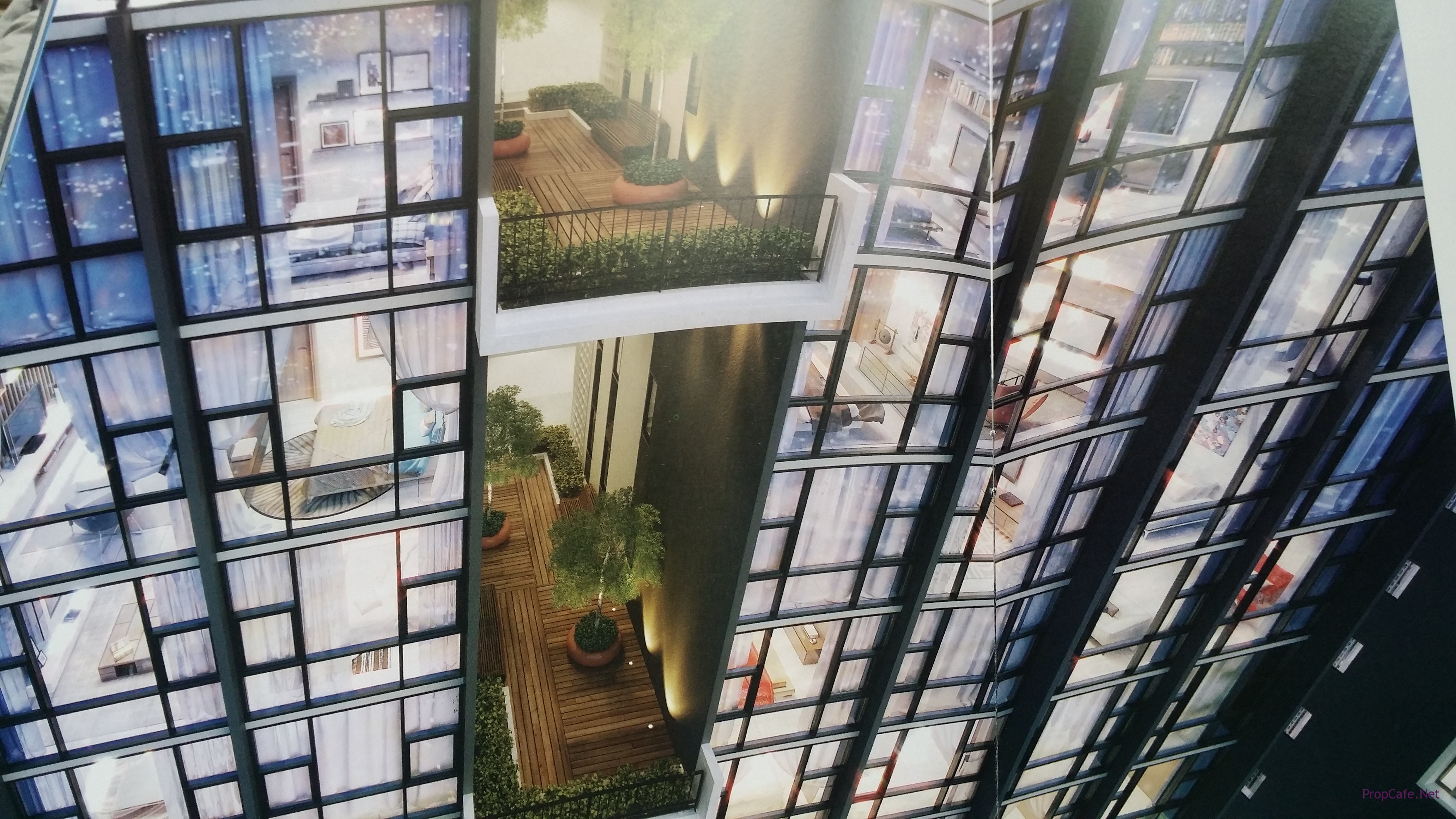 My first question to the sales personnel is, Why is it called SMD suite? From the façade, I hardly could understand it. I was told it has windows for all rooms, emmm……pardon me. Gave up, I better look at the floor plan myself to get my puzzle solved. Ok, now I know it. See the floor plan below. Each floor comes with 8 units (served by 3 lifts) and two units are paired up to be SMD in the sky. 🙂 Its separate the two units from another by the hanging garden (see below). Total of 224 units (2 Towers).