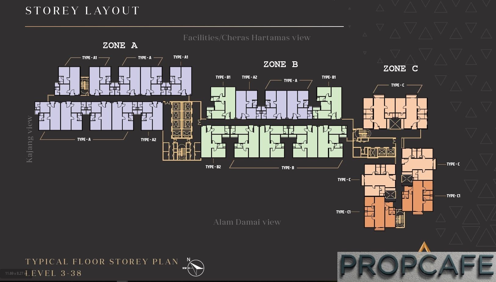 As type A has the lowest absolute entry price of from RM379,650 (RM584psf) making it the most affordable for young professional and also investors, Zone A likely will become the hot zone (so we call it the Red Zone) area with highest energy level due to its crowd profile.