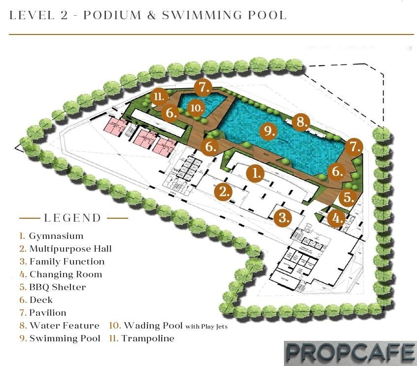 Other common facilities where normally offered in any development like swimming pool, gymnasium, function room and multipurpose hall is located on level 2.