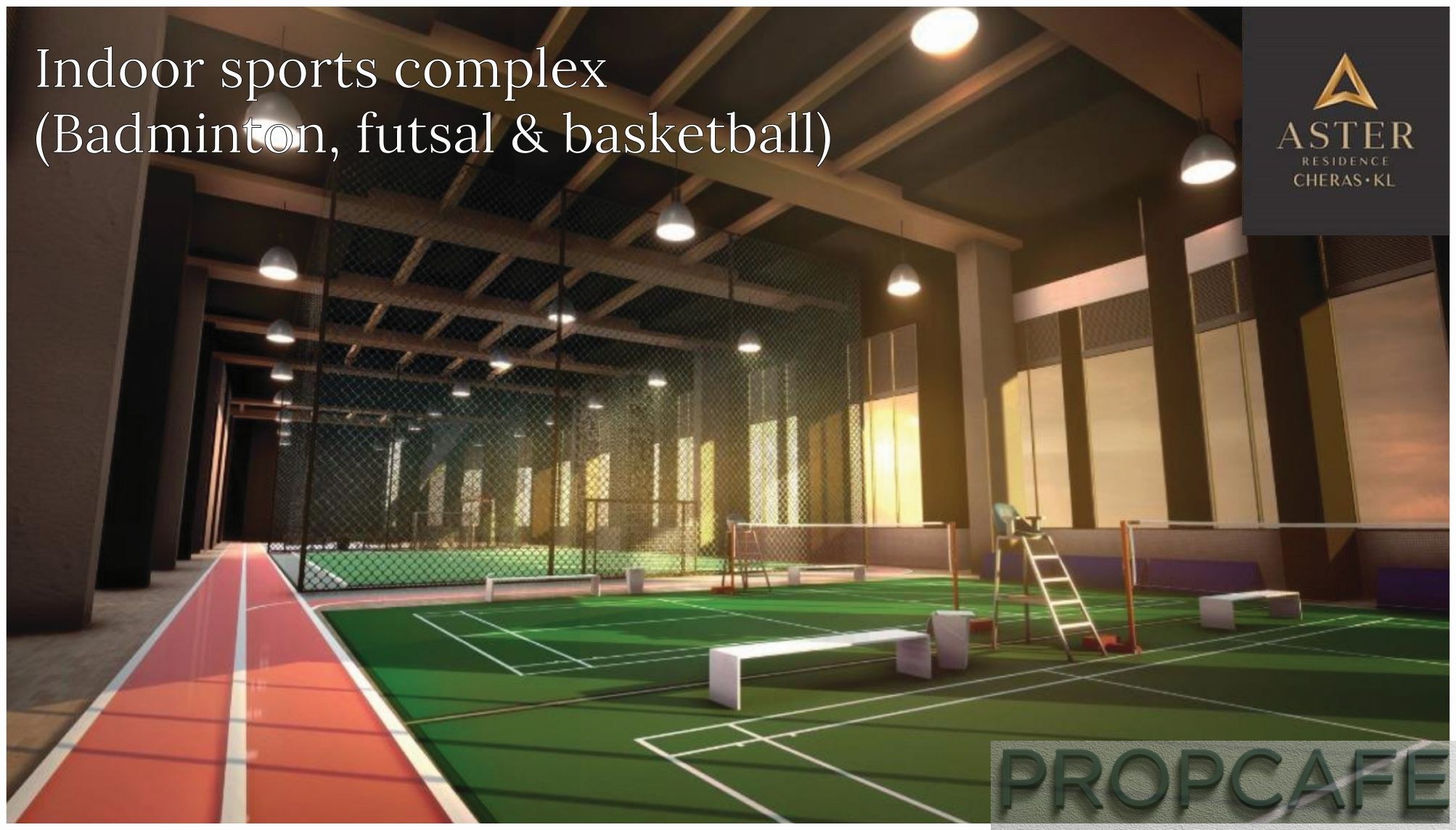 One of the highlights of the Aster Residence Cheras facilities are the indoor half basketball court, futsal and the badminton court located on Level 1.