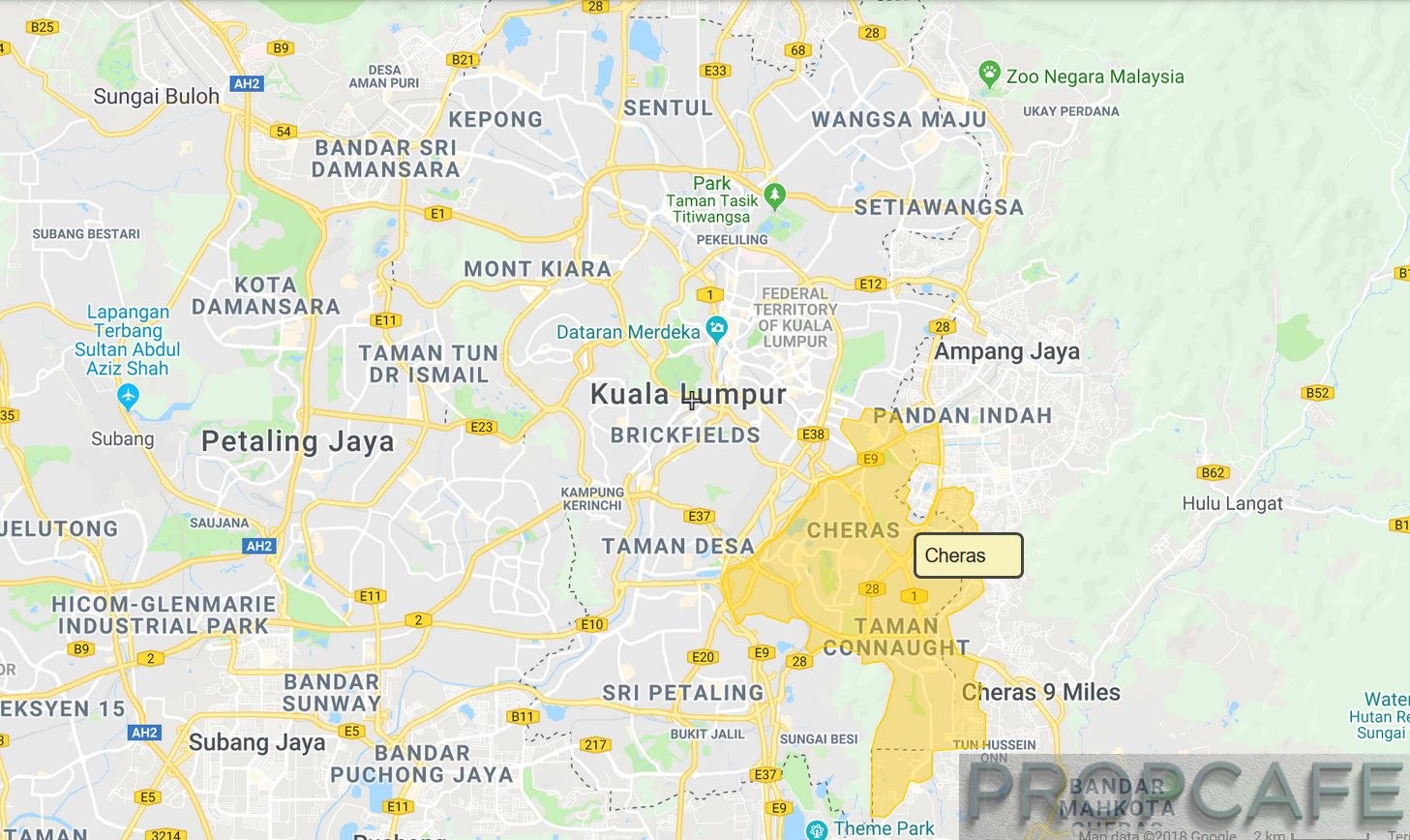 Cheras is divided into two parts i.e Cheras Kuala Lumpur and Cheras Selangor? The distance from KLCC to one of the nearest border of Cheras is just merely 4.4km away ( or ~ 10 mins by car).