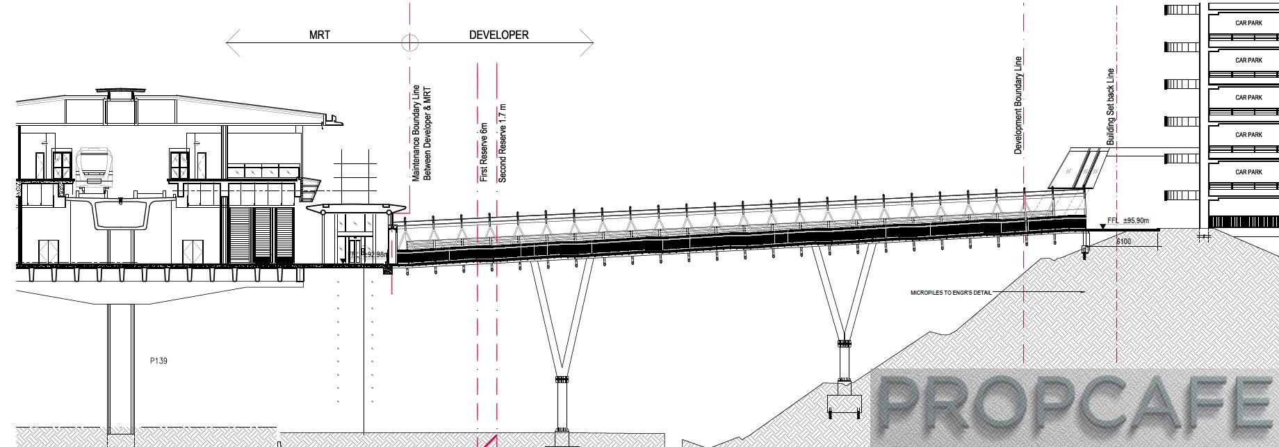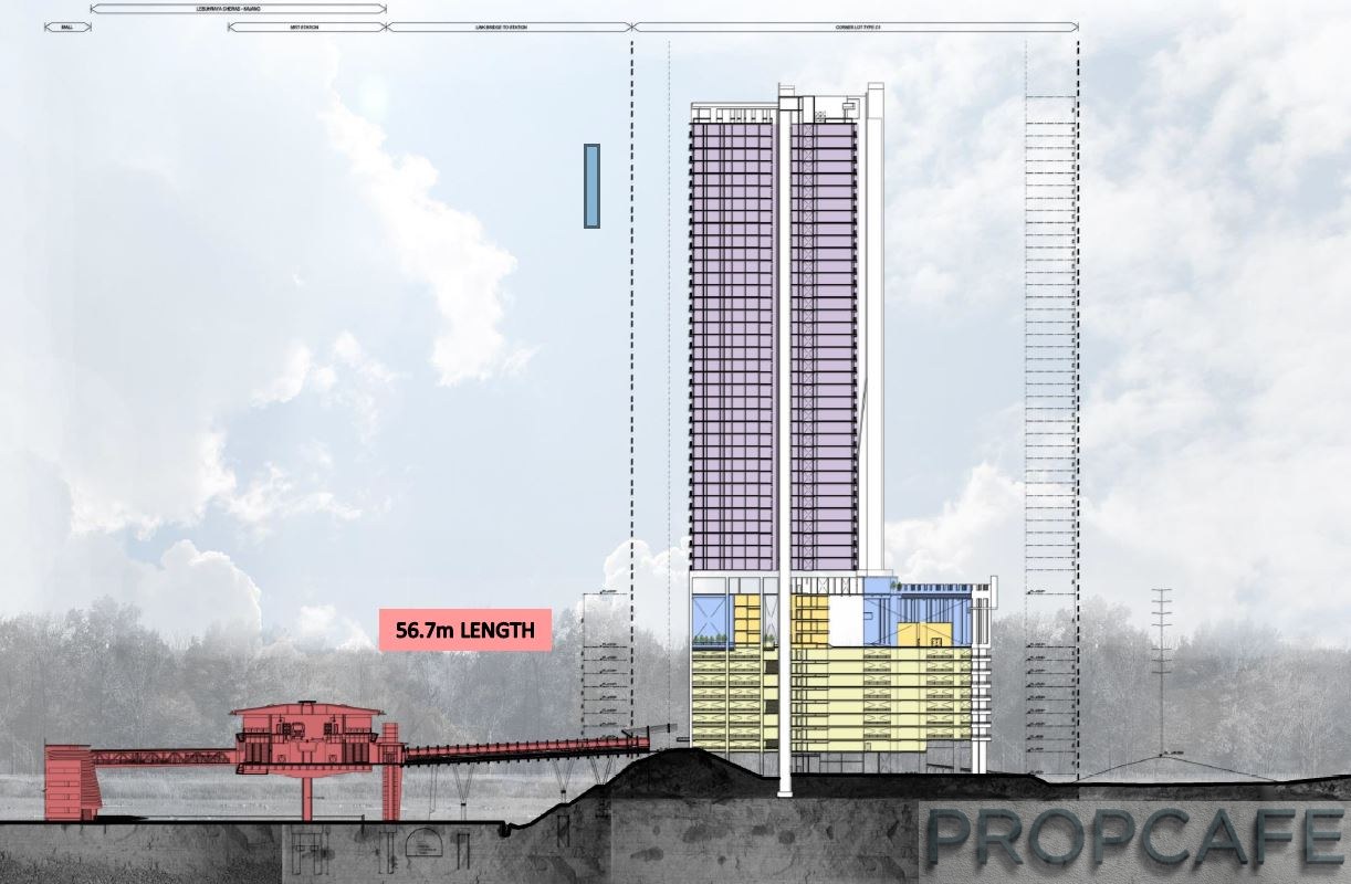 Aster Residence Link Bridge to MRT Station 56.7m cross section view With HTC Cable Height