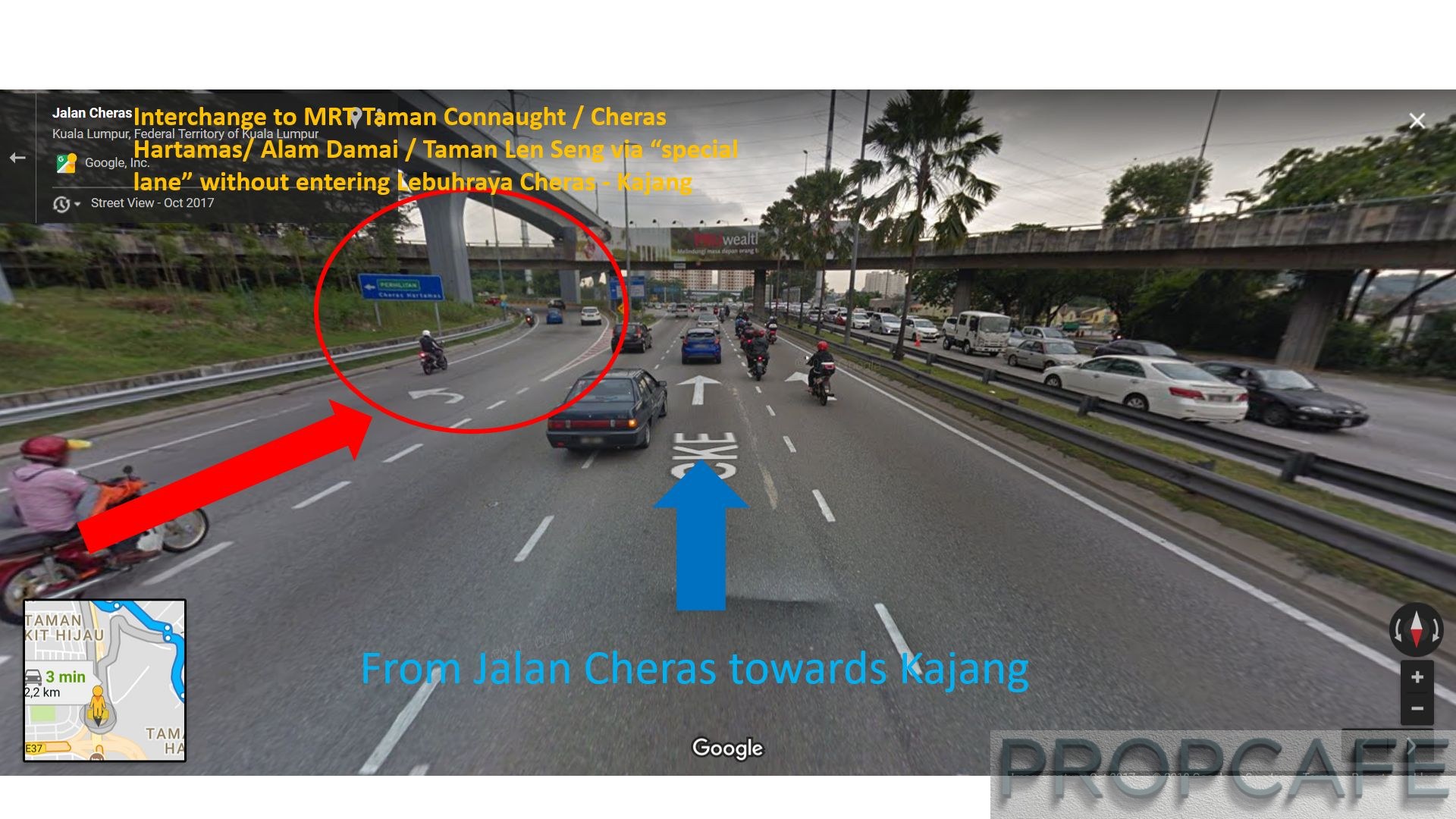 This lane will separate you from those other drivers who are heading towards Kajang diretion. It gives you an exclusive access to Jalan Cheras Hartamas and MRT Taman Connaught (as well as to Alam Damai, Taman Len Sen, Cheras Sentral and Taman Connaught).