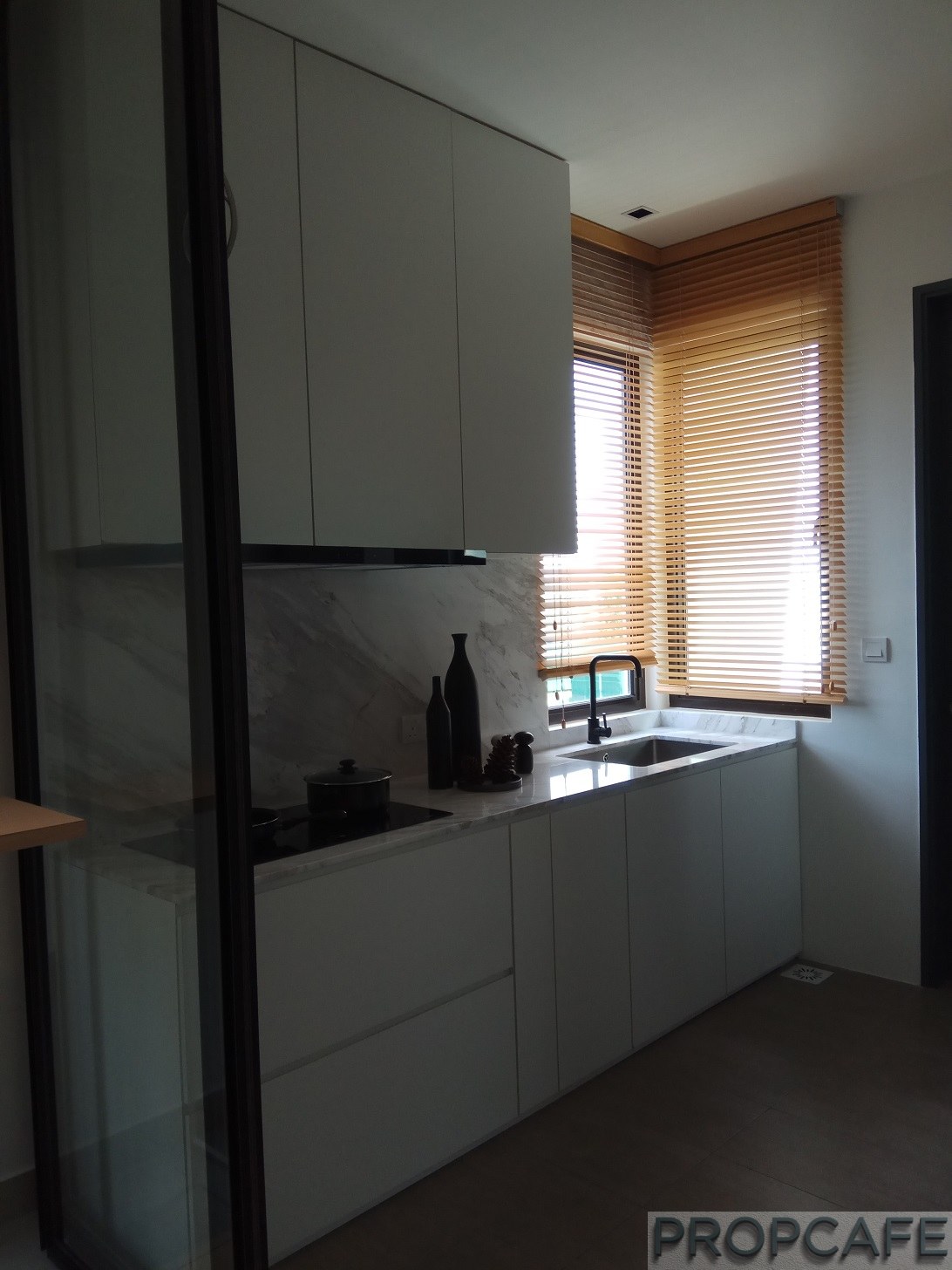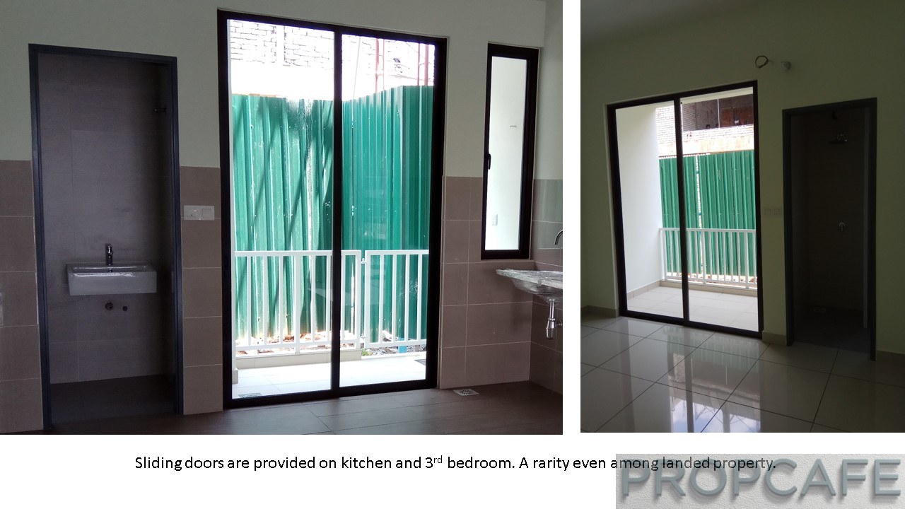- Instead of wood door, generous aluminium frame sliding door is provided at the 3rd bedroom and kitchen leading to yard for lower unit. The sliding door also allows more natural sunlight to permeate inside the unit.