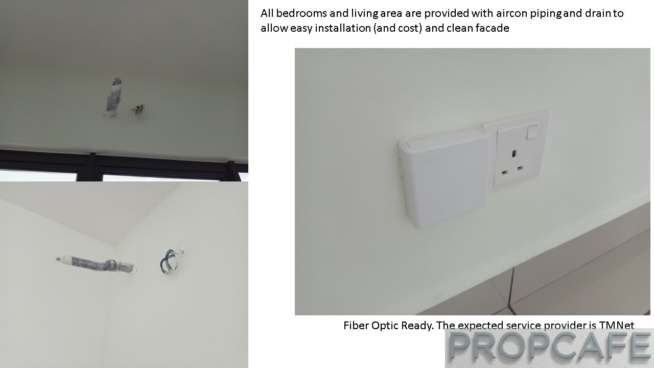 - Aircon drain and copper piping are provided for living and all bedrooms. Owners can install aircon and place their compressors at designated compressor ledge. The façade will look tidier with all compressors tucked away and owner also saves renovation money.