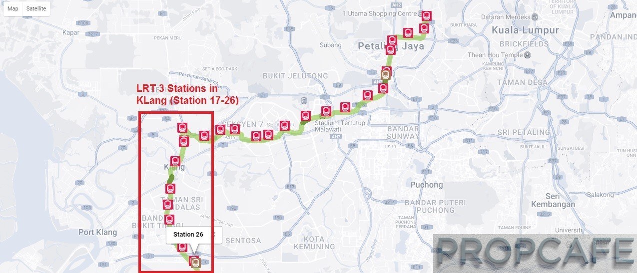 It is confirmed that it would be a total of 10 LRT stations in Klang from the latest proposed 37km LRT line 3. The nearest station to Canary Garden is located just 2km away (Station 26 – near to the KFC at Johan Setia).