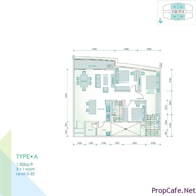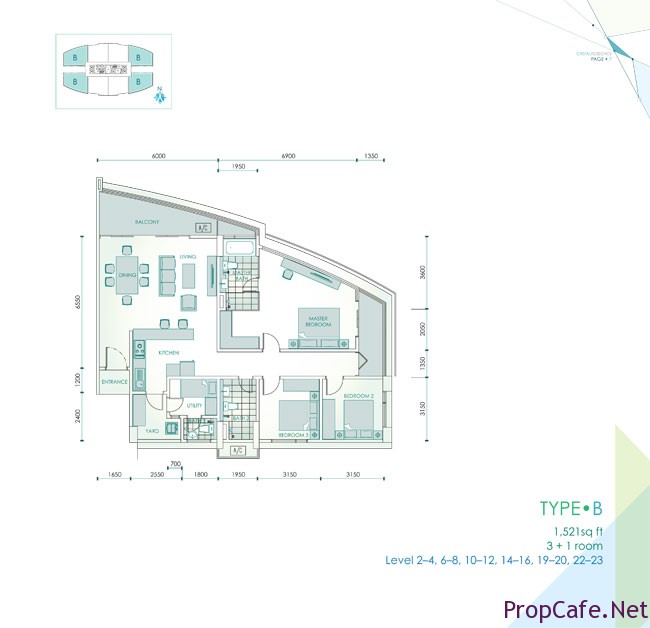 Forget about penthouse, basically there are 3 layouts to choose. 1302sf is the intermediate unit which I quite like its layout. 3+1 with two bedrooms that comes with proper sliding door view. Nice rectangle size of living room which looks spacious thanks to its open kitchen (some may not like it). Perhaps if you need wet kitchen, you may “force” it in your yard (:)).