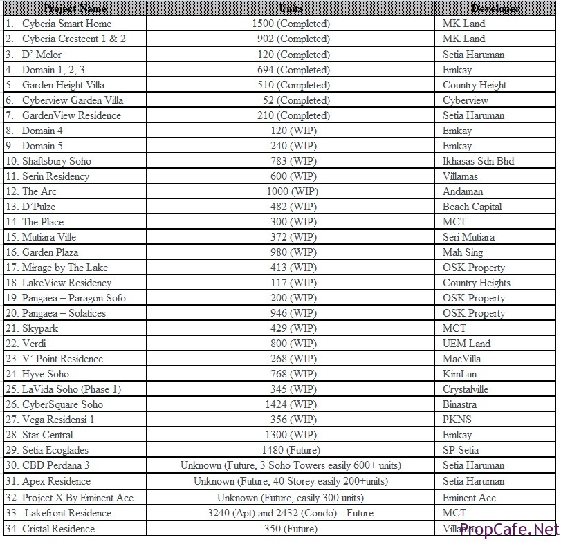 Recent trend shows Cyberjaya’s developers are crazily launching all high-rise developments to capture the current BBB (buy buy buy) sentiment particularly the pigeon hole size developments as it is more affordable. The investors need to aware on the supply issues in this segment as many still do not pay attention on the expected supplies in next 3 to 5 years.