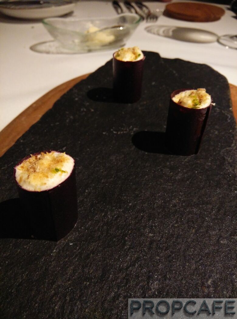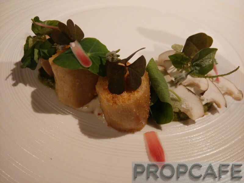 Aubergine braised in Mushroom Stock, Jackfruit Seeds, Black Bean Sauce and Garlic Emulsion