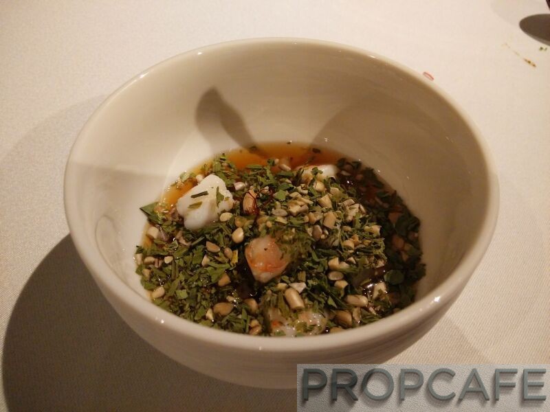 Steamed Ming Prawns, Brined Radish, Dried Vegetables, Cold Prawn Broth