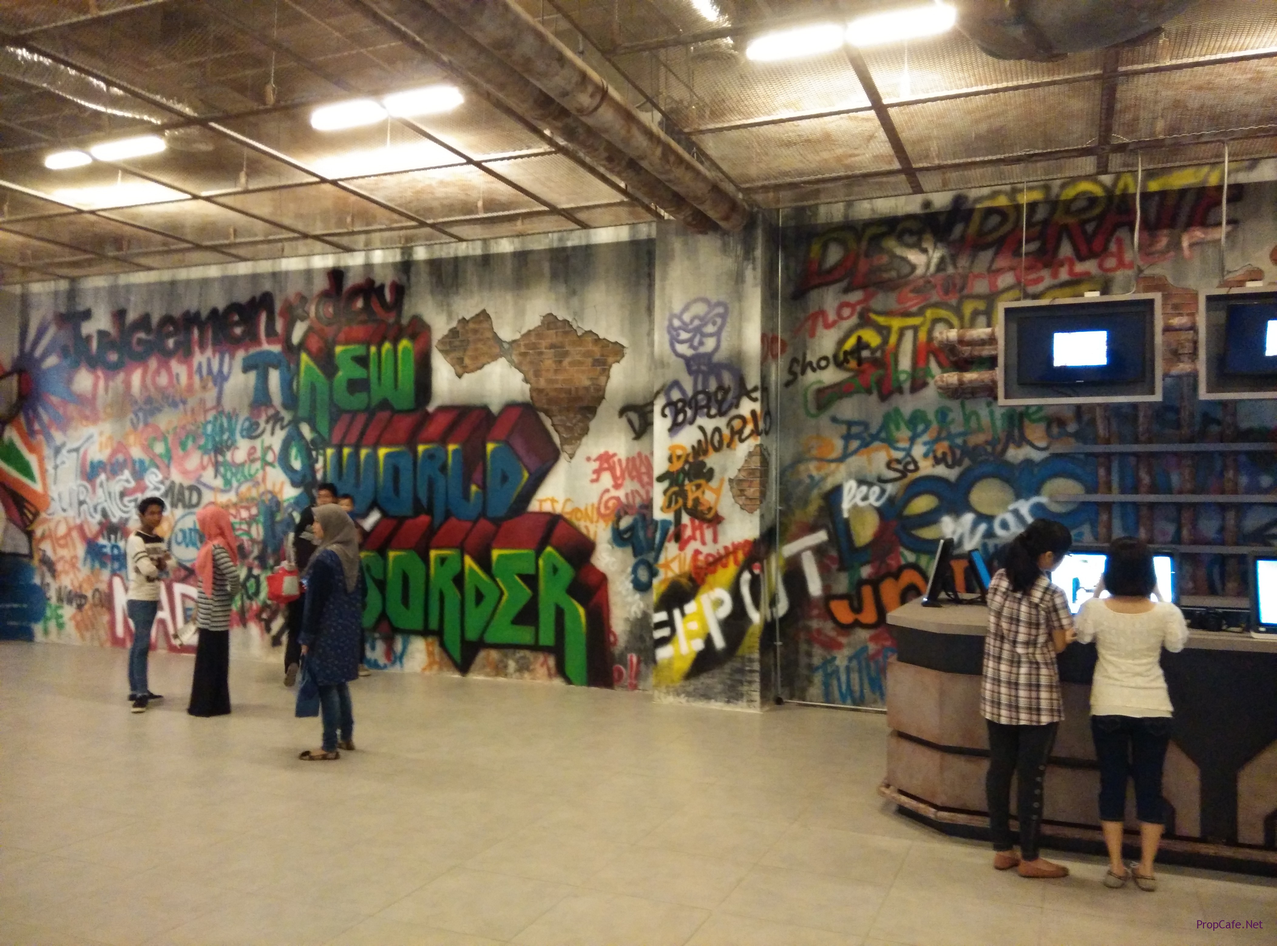 District 21 Theme – A revived, recycled and repaired environment. The deconstructed interior has intentionally exposed all M&E works visible. Where material has not been recycled it has been rendered to appear weather and aged. The walls of the lobby are graffiti bombed provided a stark contrast to the clean new finishing of the mall concourse. The resulting look gives the impression of a once abandoned building that’s been left in ruin. Well.. basically the scene is quite similar to what we usually see in the movie where portraying an image where the Earth is pretty dusted and ruined down.