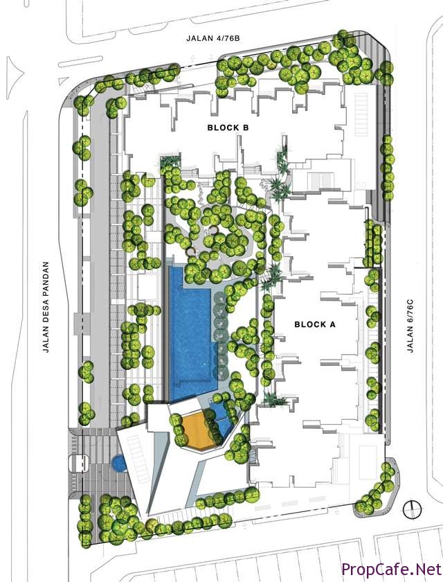 G Residence is sitting at a 3.62 acres land in Desa Pandan which consists of 2 blocks (23 Storey) with a total of 474 units. There is also two floors of retail outlets (26 units with 60,000sf) underneath the residential units (see above).