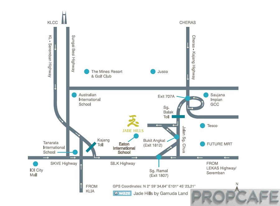 Waze app will be able to easily take you to Jade Hills, just search for Jade Hills by Gamuda Land.