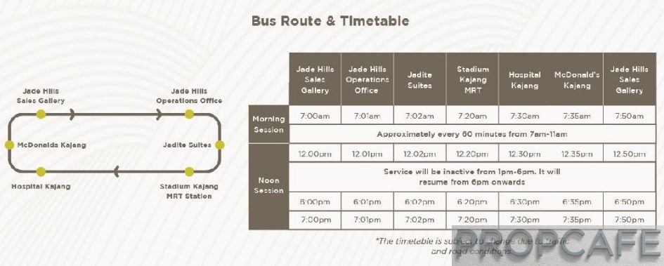 For updated time table and bus route, please refer to Jade Hills Sales Office for details.