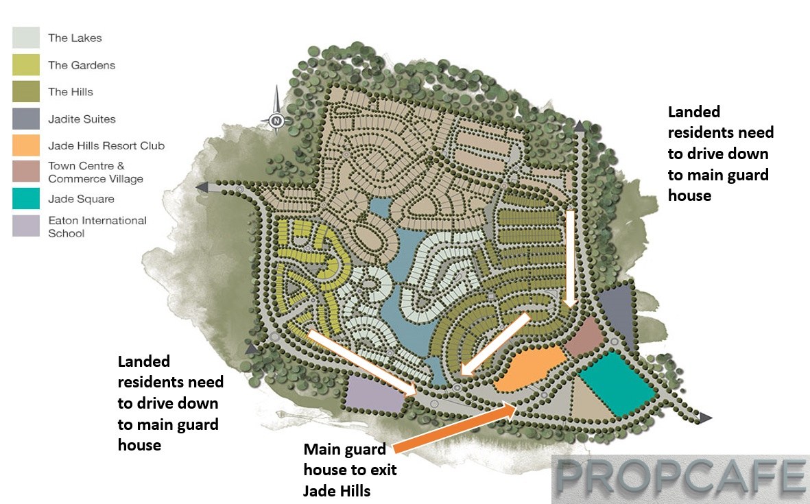 Because the development of Jade Hills spans approximately 338 acres some landed units are destined to be further away from Jade Hills entrance due to Jade Hills adopts “One Entrance” concept for better security control and safety of the township