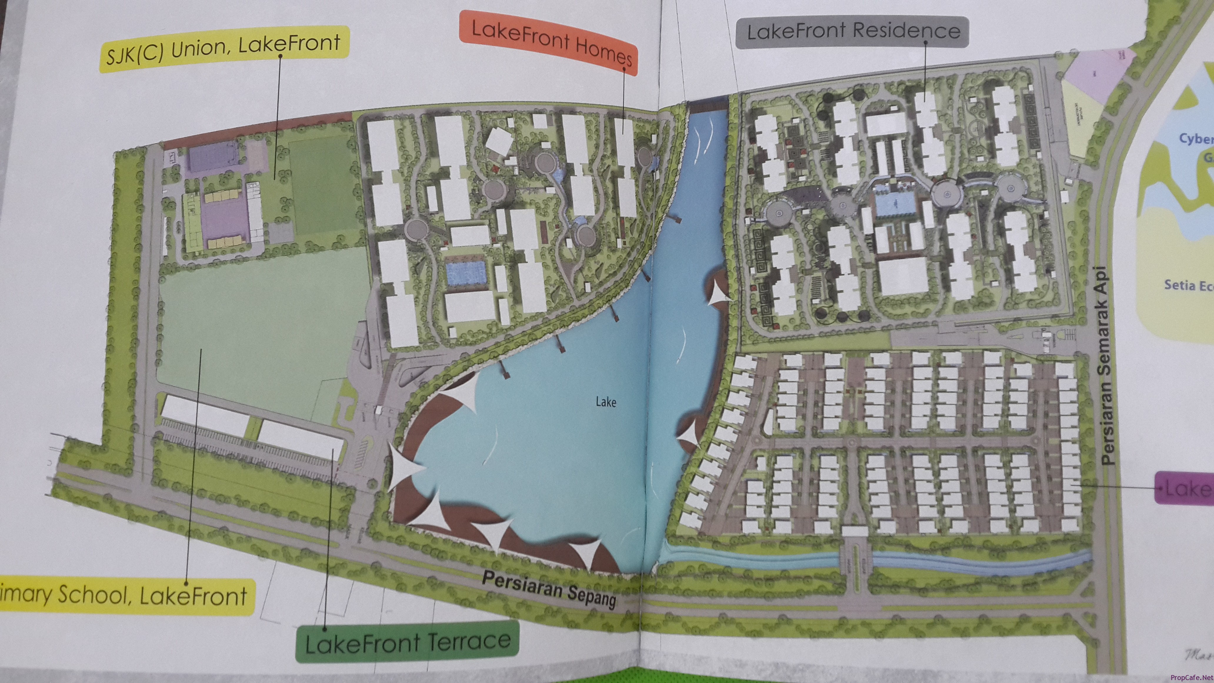 Lake Front residence is the condo project on the top right, Lake Front homes, the affordable apartments on the left side of the lake. Left most of the picture show the 2 schools to be built.