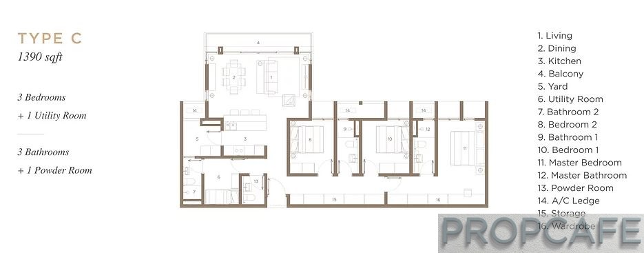 PropcafeTM particularly like the wide living and dining especially with balcony is fully opened, like bringing outdoor living inside. PropcafeTM truly believe a good layout design will enhance the quality of living which too many developers nowaday take it for granted (due to many reasons).