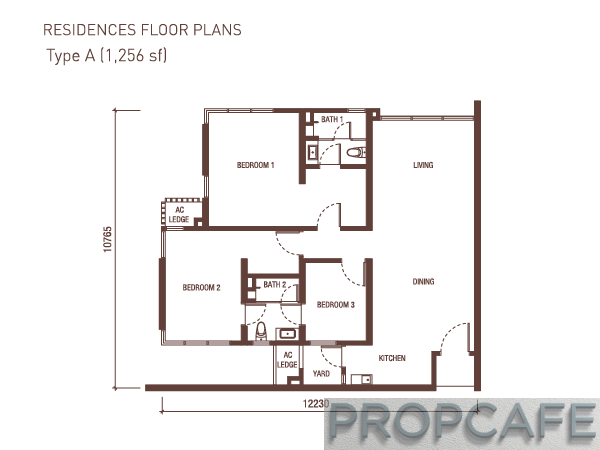 TYPE A – 1,256 SQ.FT. 3 ROOMS 2 BATHS
