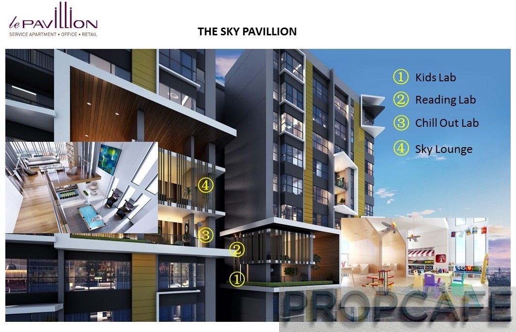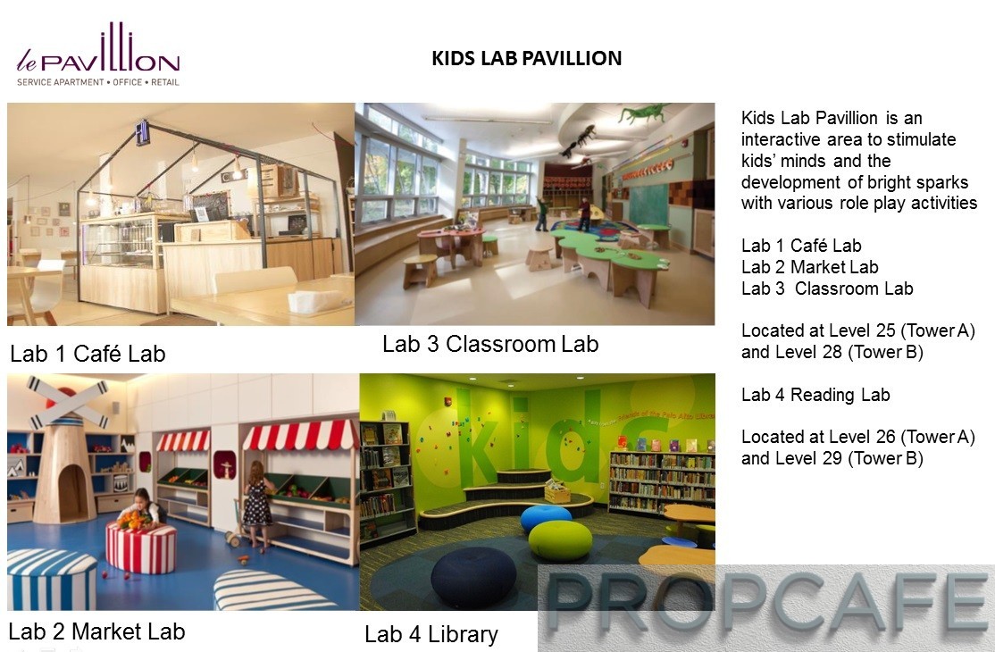 There are sky pavilions dedicated to adult and kid on both Tower A and Tower B. The adult residents can relax, unwind and rejuvenate at Chill Out Lab and Sky Lounge – an entertainment area located at Level 26 and Level 27 of Tower A and at Level 29 and Level 30 of Tower B. While for kids, they can enjoy an interactive area with play role activities set-up to stimulate their mind at Play Lab and Reading Pavilion located at Level 25 and Level 26 of Tower A and Level 28 and Level 29 of Tower B.