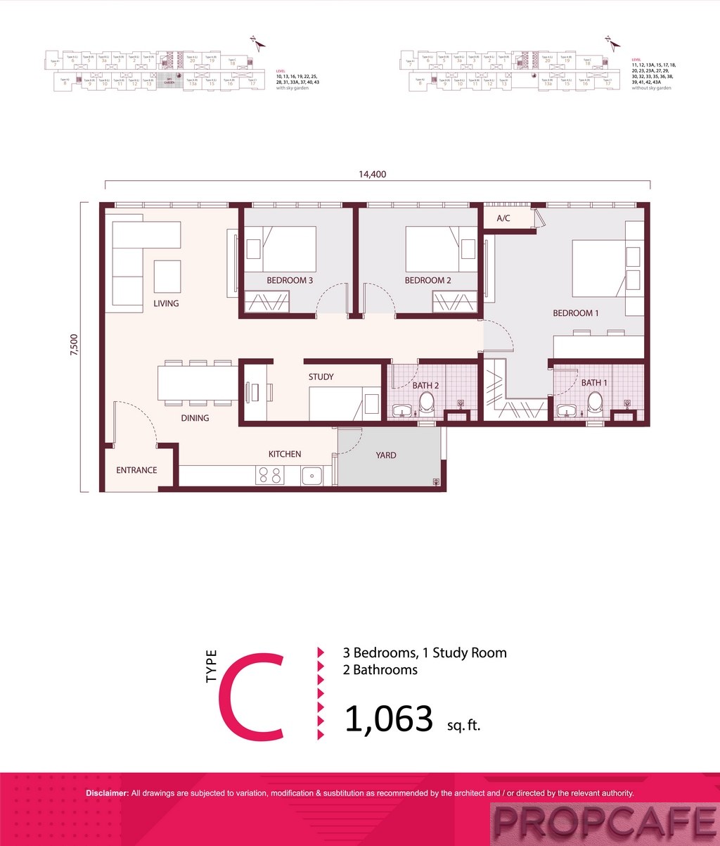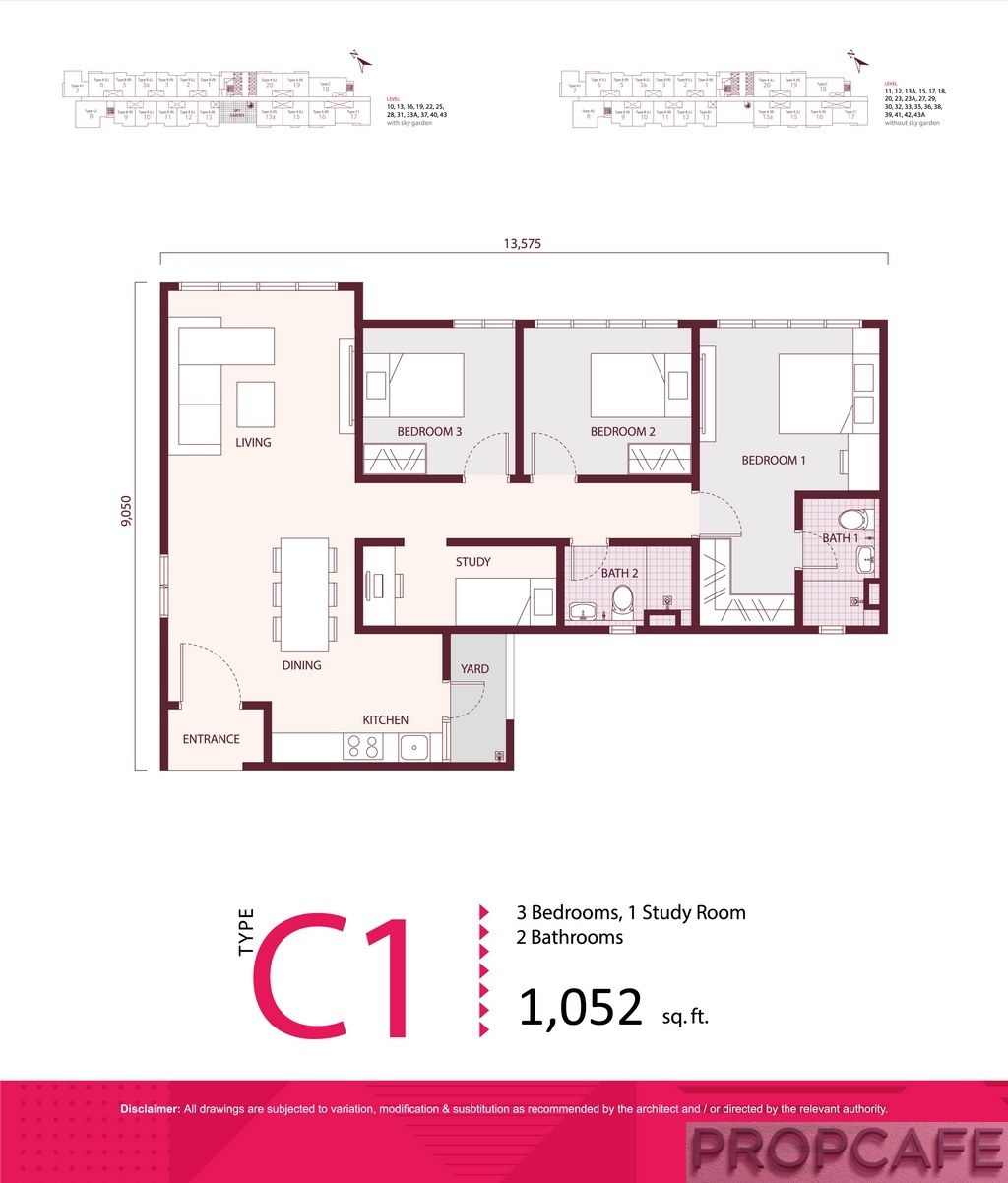 PropcafeTM like type C and C1 and should be the choice of own stayers. Not only it accommodates 3 bedrooms, it also has following
