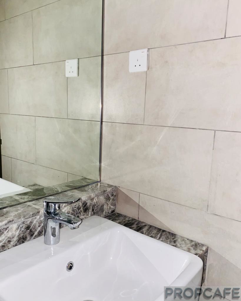 PROPCAFE will not cover our buddy’s unit for privacy reasons. However, we have to say that the finishing is above average based on our experience on VPed units. We didn’t many issues with the tiling and wall. All laminated flooring and finishing are neat and tidy. The Aino kitchen cabinet also comes with a free-standing island. The developer is also providing Teka hood and hob, American Standard sanitaryware, upgraded the instant water to storage boiler, quality sliding doors and windows, Daikin air conditioners in rooms and living hall, and good quality doors. The bathroom comes with full height mirror, marble top for basin area, rain shower head, shower screen, towel hanger, and recess wall. The developer is very detail to ensure it stands out from the rest, for example, the metal cover of compressor area from balcony, socket in bathroom, curtain box-up, small curb ramp to show area, right sizing of entrance foyer and so on. Well, the only complaint maybe is the choice of marble shade tiles. This is probably the first time the developer chose this design. Well, our advice is, to use marble shade tiles, first, it must come with at least 4-6 variations and it has to be in extra-large size to make it grand (minimum 2ft x 4ft tile).