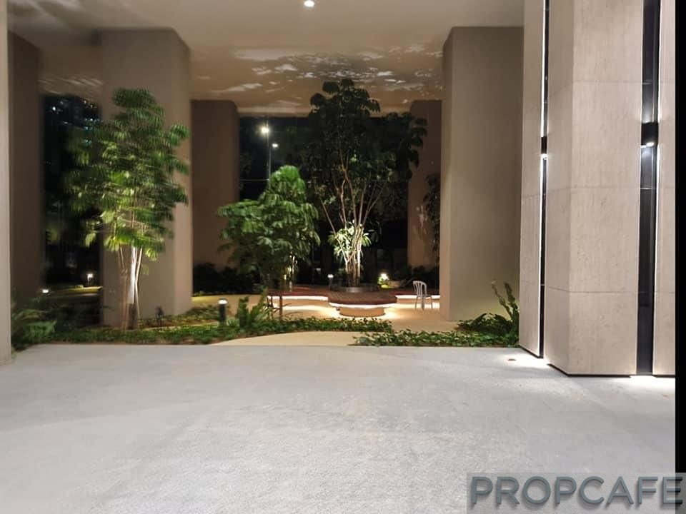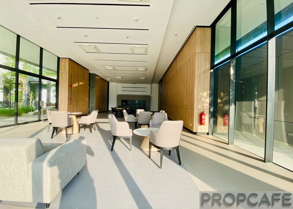 South Brooks has an open-air grand lobby with a double volume ceiling. Well, we should say, two lobbies instead. The developer allocated a large horizontal waiting lounge for both towers. As it is accessible and connected, the whole area comes with resout setting and spacious. Well done!. If we want to nitpick, probably too many pillars here. Well, it is all to support the building so it is understood. Having said that, all pillars have the cladding done with lightings. Superb!