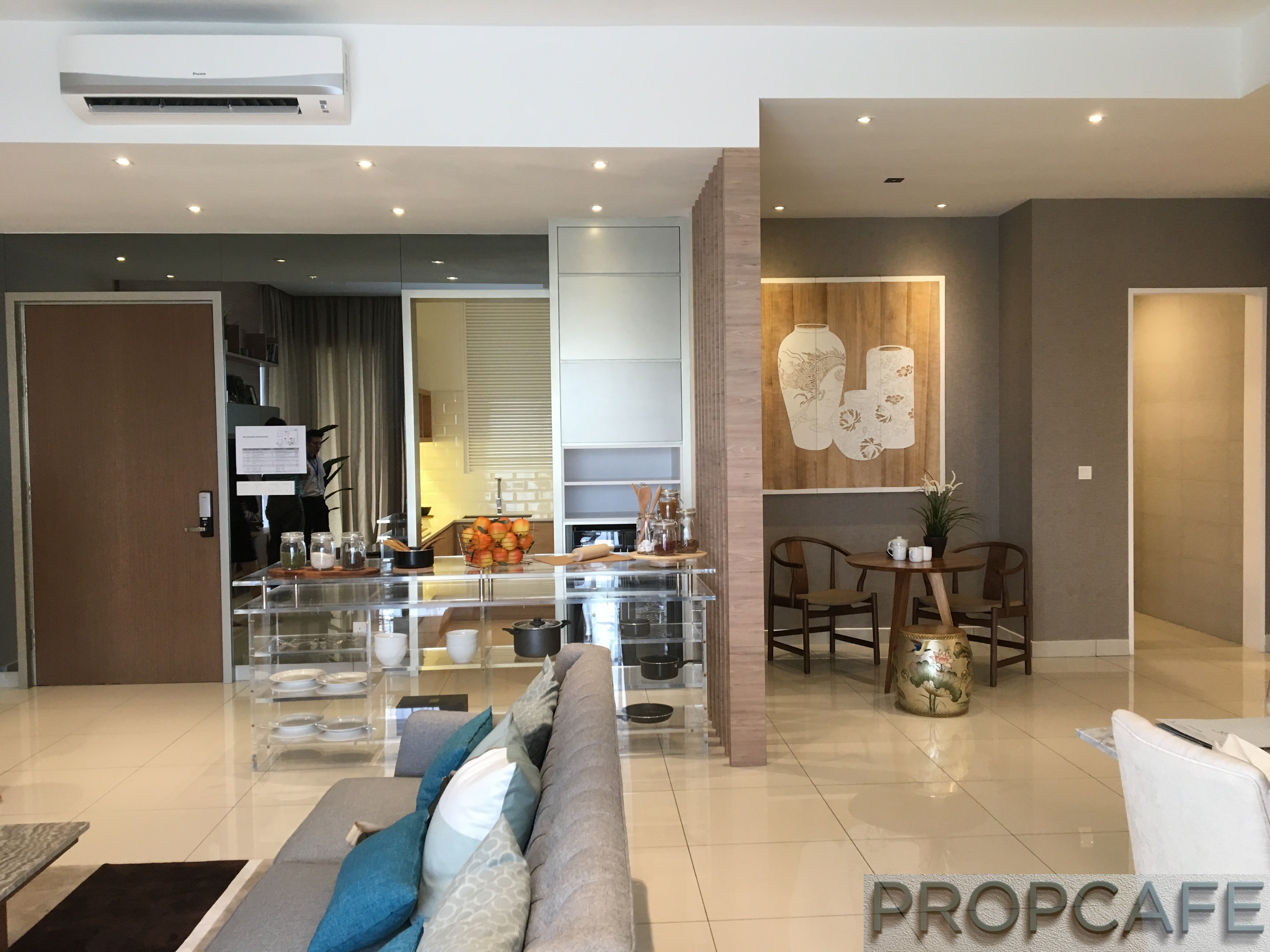 The relatively higher ceiling of 11ft (3,300mm) also create additional cubic space for the unit. The other freebies includes water heaters, hob & hood, shower screens, air conditioners, digital lockset. Timber and engineered laminated flooring is provided for Condo Villa and condominium unit respectively.