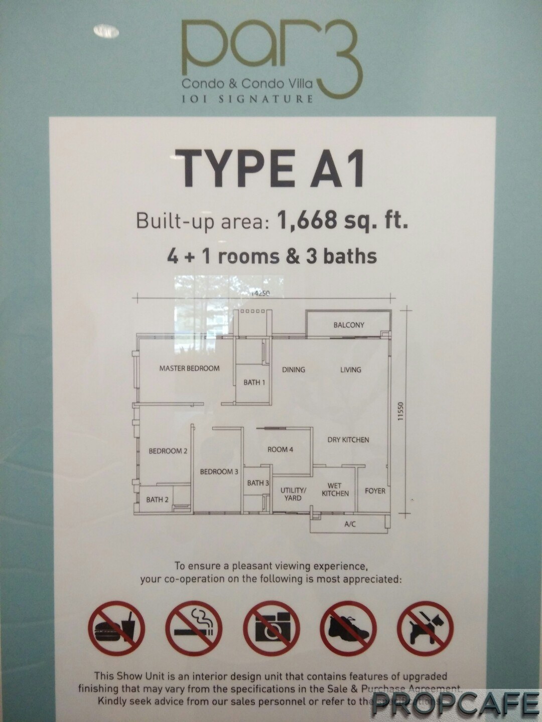 Par 3 condominium’s pricing starts from RM898k or from 658psf. The incremental pricing for every floor is about RM3k whereby different premium of RM18k for the (Type A1) unit comes with a balcony and RM8K for unit with a common landscape deck adjacent to it.
