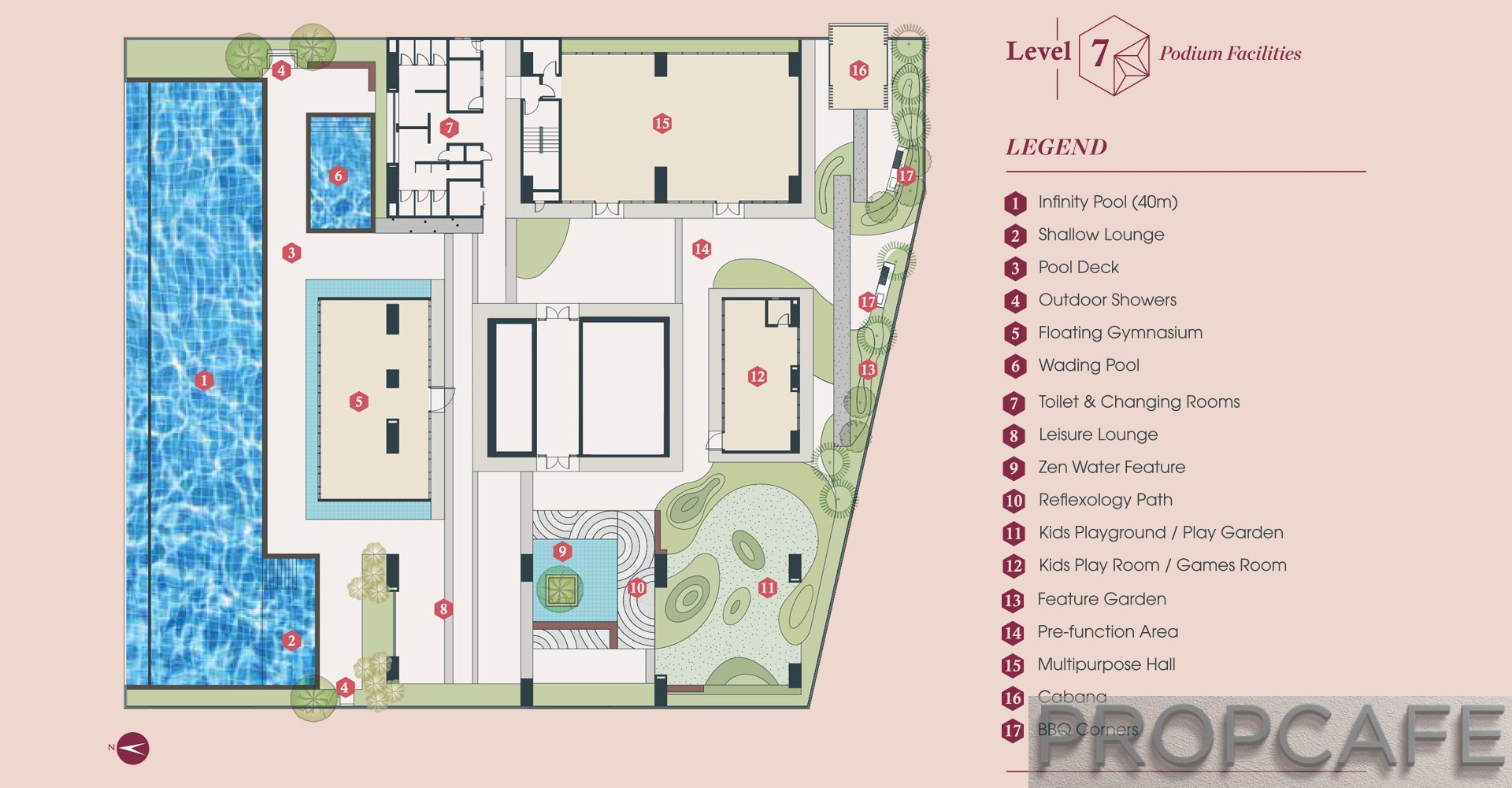 MIYU comes with pretty standard facilities at ground level and podium level 7 (see the list below). You will get water features, grand lobby, 40 meter long infinity pool, floating gymnasium, cabana, leisure lounge etc.