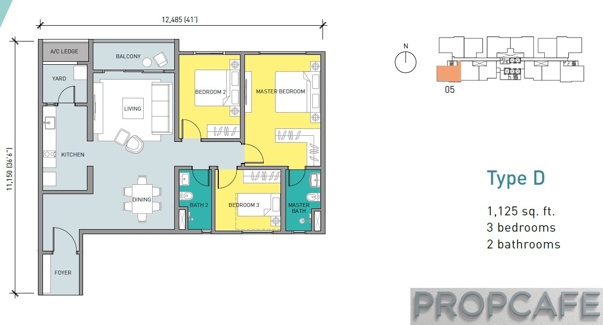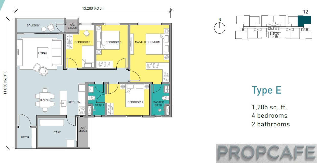 There are 5 types of layout as summarized by table below. The size range from 813 sqft to 1285sqft with configuration of 2+1, 3 and 4 bedrooms. Majority of the units are 3 bedrooms where 2+1 and 4 bedrooms are split quite equally.