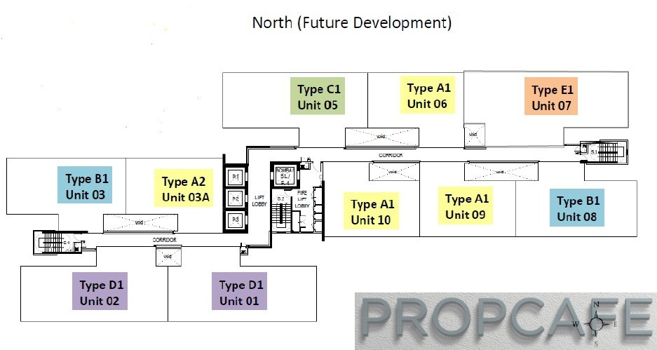 Type D and Type E are dual key unit. A niche product, appeal to those with extended family who want to live near but not near near near. Or alternatively the dual key unit, can be rented out separately.