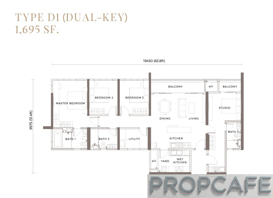 | D1 (dual key) | 1695 | 3+1 & 1 Studio | 3 |