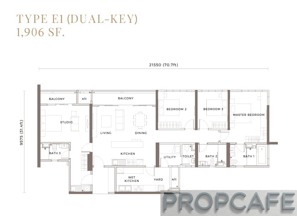 | E1 (dual key) | 1906 | 3+1 & 1 Studio | 3 |