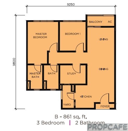 Type B – 861 sqft (Length 32.2ft; Width 30.4ft)