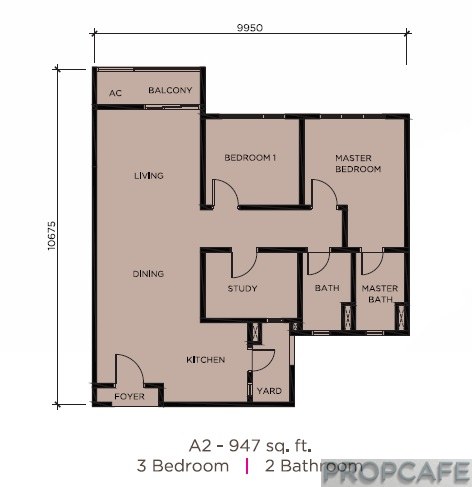 Type A2 – 947 sqft (Length 35ft; Width 32.6ft)