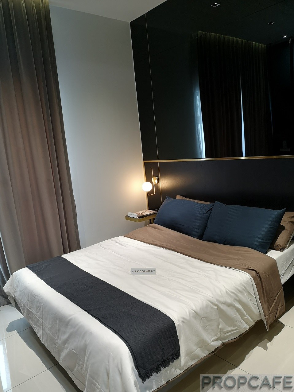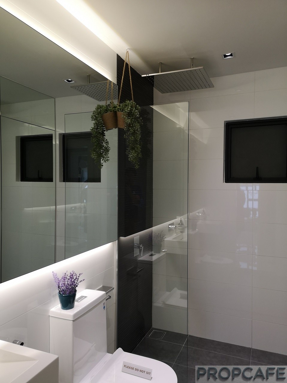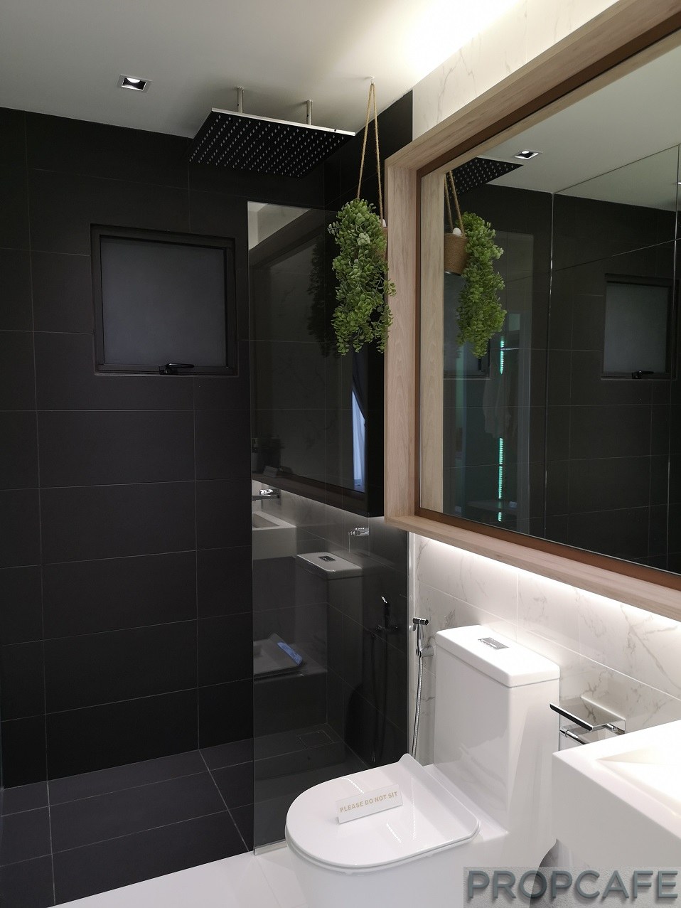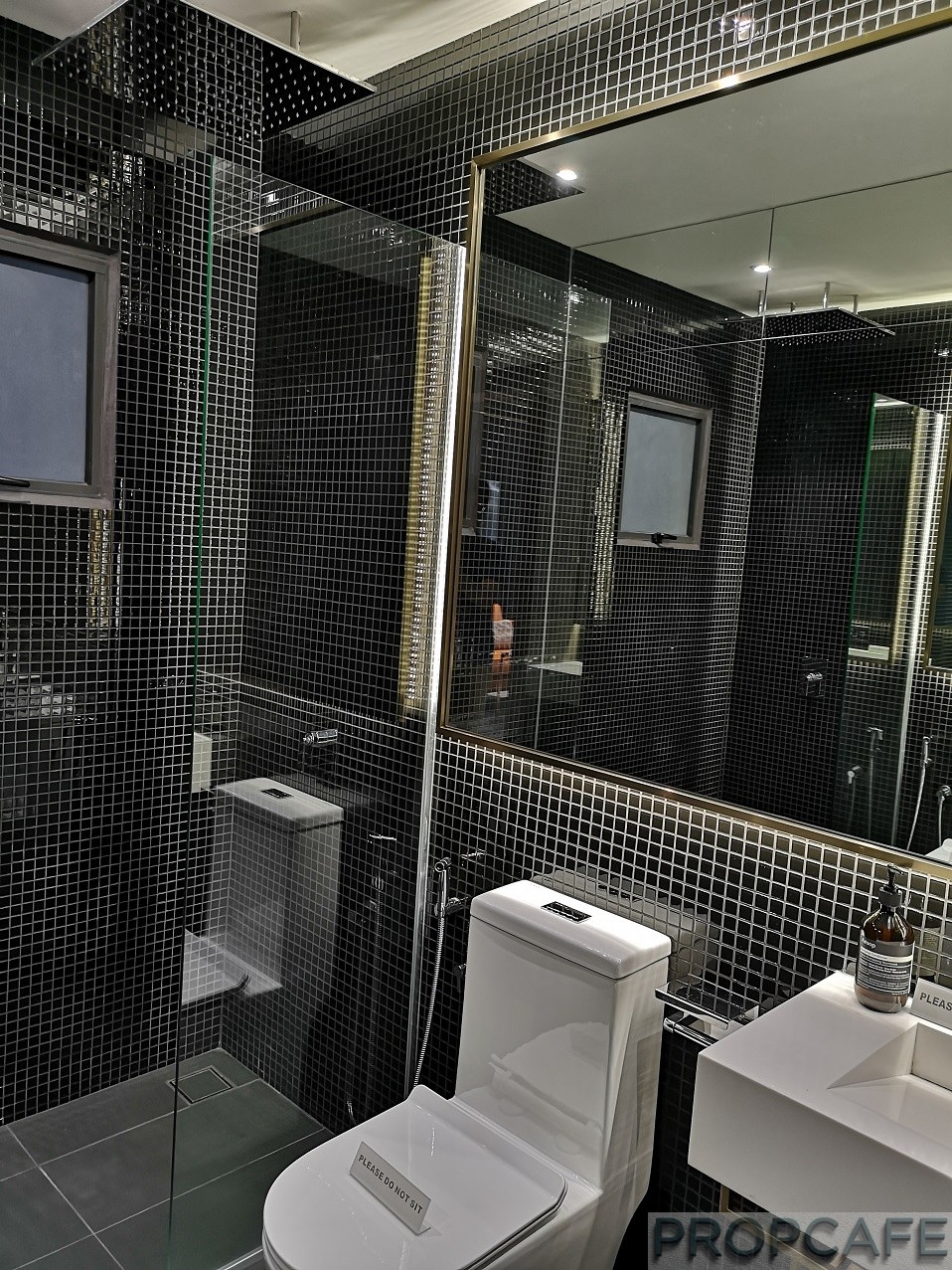 In general, developer just provide two units of aircon. The clear ceiling height is 9’ 6” and tiles are provided throughout the unit. Porcelain tiles is not exactly PropcafeTM favorite material in bedrooms. Kindly check with friendly SA what and type of fittings are included in the unit. For example, the rain shower, shower screen and mirror in the show unit bathroom are not included.