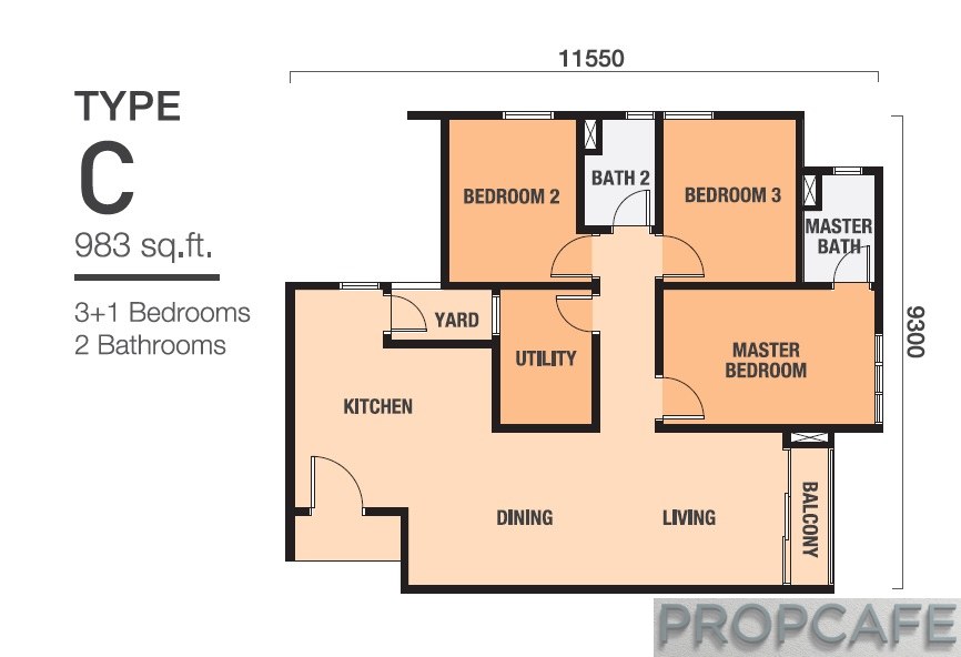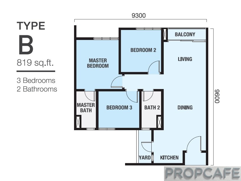 PropcafeTM does not have comment on the layout. SCP has tried to be as efficient possible by squeezing bedrooms, yard, foyer etc. However one feature that caught the eyes is the sliding door with grills without the balcony for type A1 and A2.