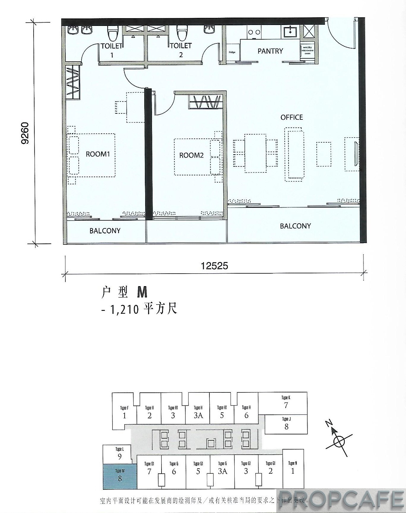 M | 1210 | 2 bedrooms + 2 bathrooms | 1 | South-West/ KL Tower |