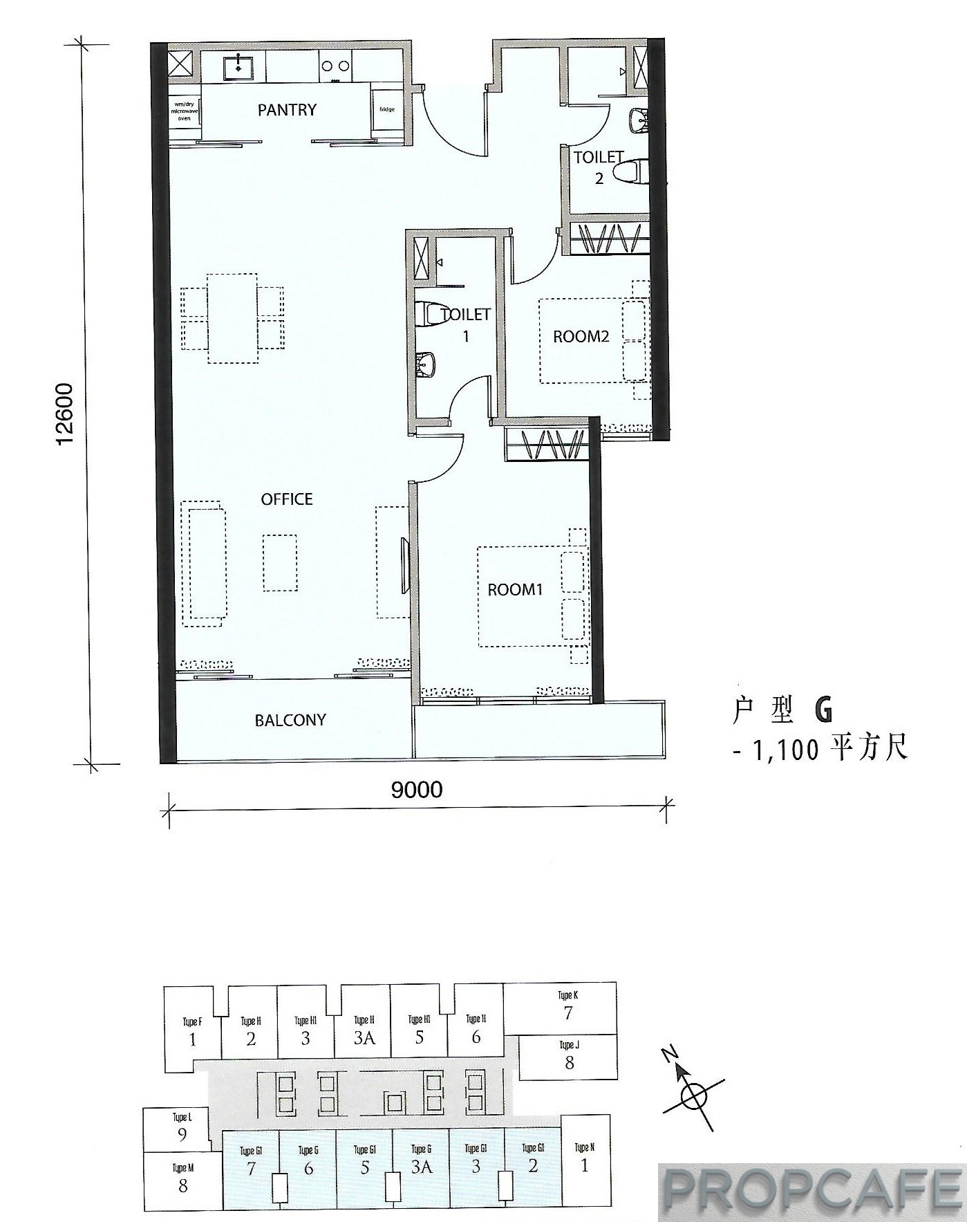 The Face II is SOHO with residential Schedule H title. Therefore, throughout the layout the pantry (instead of kitchen) and office (instead of living and dining) area are being used. Interestingly… All units on south side has balcony where else on North side without any balcony. Propcafe wonders what the balcony will be used when 3rd block is coming up and blocking all the view.