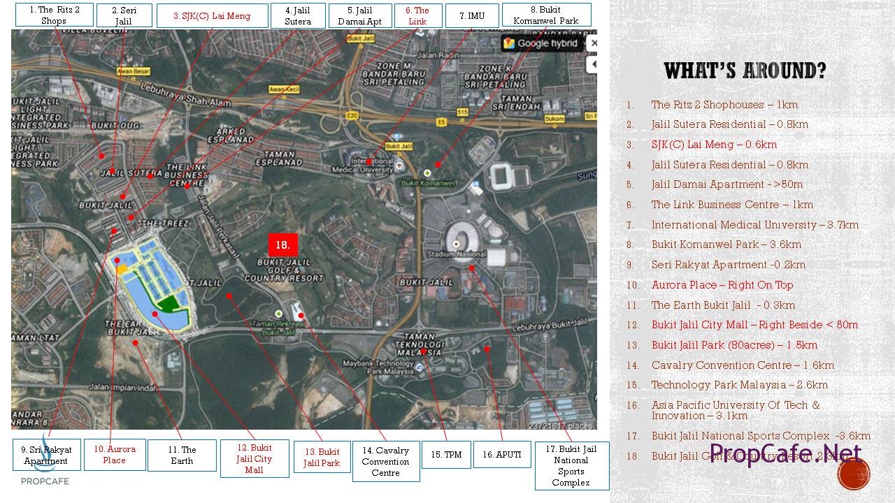 - Located within the 60-acre Bukit Jalil City, atop Aurora Place and only a minute walk to the upcoming Pavilion Bukit Jalil shopping mall.