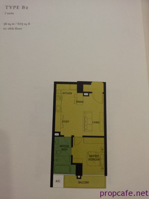 Next is 603sf (intermediate unit facing Bkt Ceylon) , the pricing is cheaper than 588sf in absolute term (around RM1.04m) because this type is non-corner with a dark living hall (without window/balcony). Well, it is not my cup of tea to have closed up living hall. See below. Due to the affordability. this type is also almost sold out when I last visited the sales office.