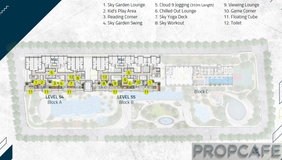 Level 54th on block A and 55th on block B is linked with Sky Bridge. Developer has incorporated Viewing Lounge and Floating Cube to take advantage of the majestic KL Skyline view