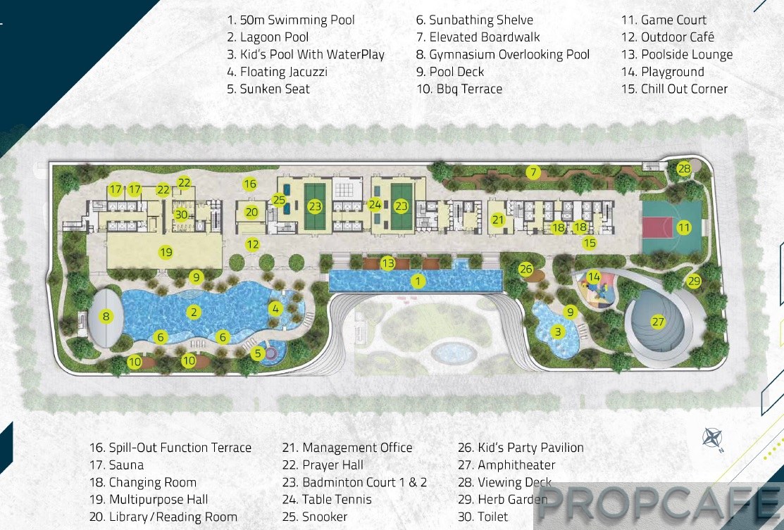 Myriad of facilities available on Level 8 to keep residents of 1344 units occupied. Notable facilities such as Olympic length swimming pool, Lagoon Pool, Multipurpose cum 2 badminton courts, Amphitheatre and Half Basketball Court
