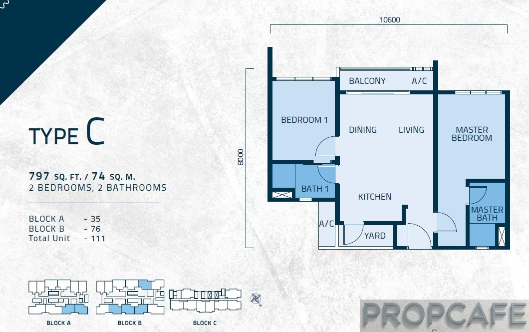 What caught PROPCAFE’s eyes is wide living and dining area which allow more natural light to permeate through the unit. Most layouts also dual keys ready where minimal renovation for the conversion.