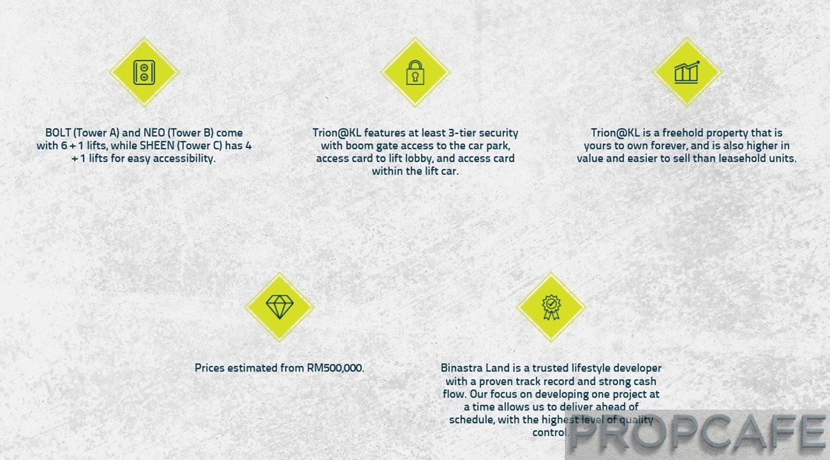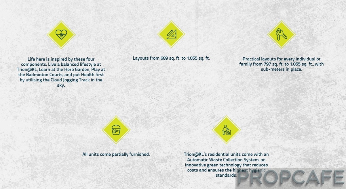 From the website, Trion has loading up plenty of the USP of the development
