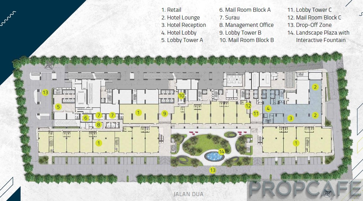 On the ground floor, there are 38 units of retails to serve the residents and hotel guests. Each block will have dedicated lobby and drop off area with theme Bolt, Neo and Sheen.