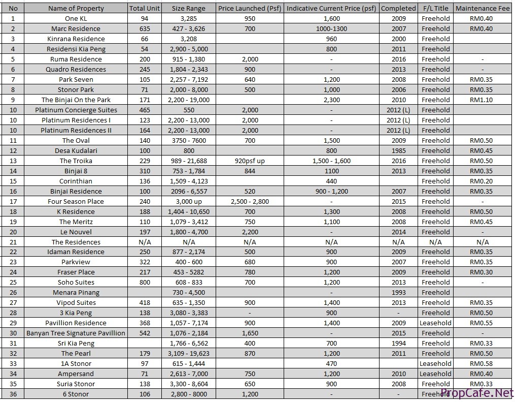 Although it could be controversial, PropCafe would like to take challenge to step into this grey area and carve out the Premium KLCC properties from the rest.